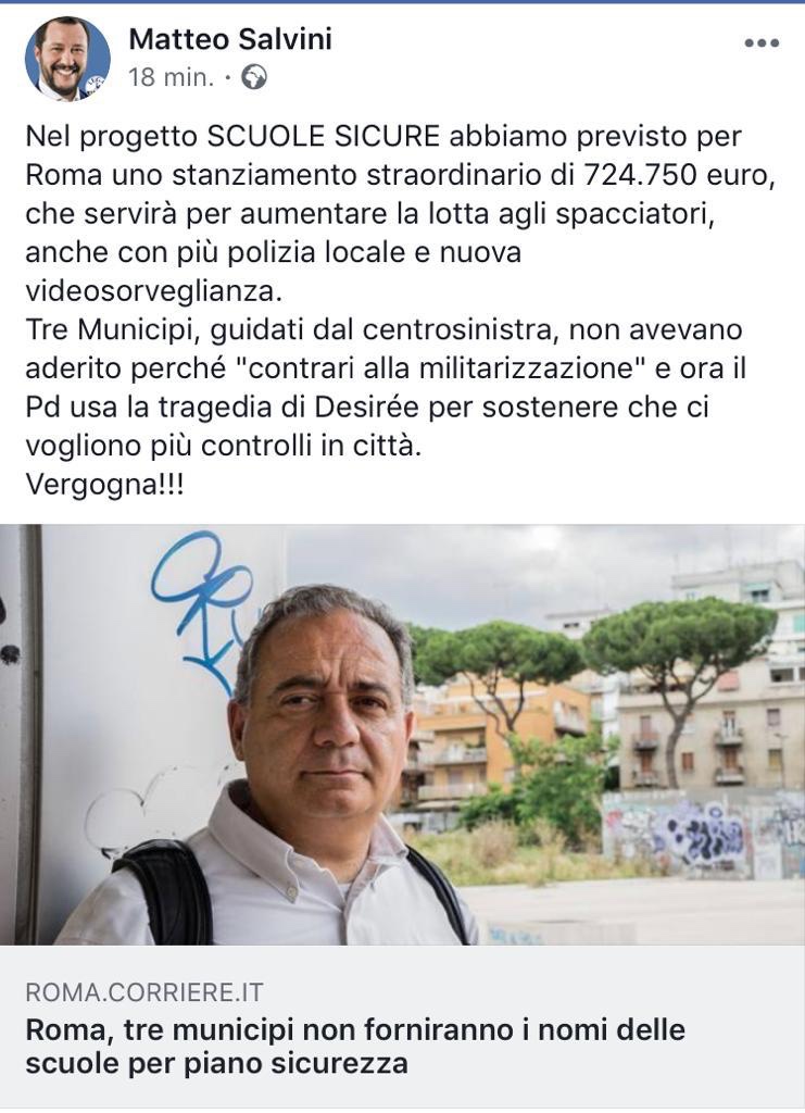 Si vergogni Salvini, che non conosce Roma, che l’ha insultata per anni e che ora ambisce a scalarla nel prossimo scontro elettorale.