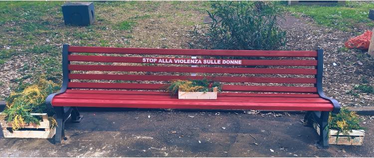 Abbiamo pitturato una panchina di rosso per dire basta alla violenza sulle donne.