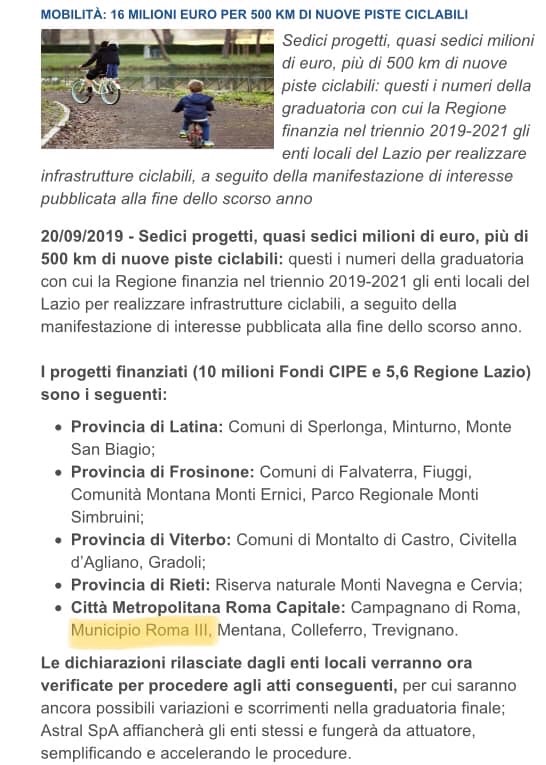 Orgoglioso di far parte dell’amministrazione che ha appena vinto il bando della Regione Lazio sulla ciclabilità urbana.