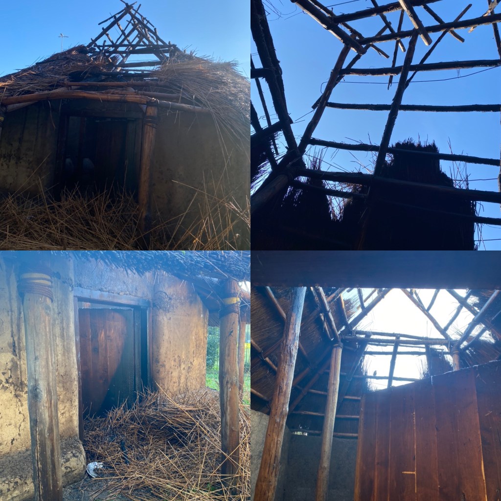 Stamattina, dopo la chiamata di Cinzia Romagnoli, ci siamo subito recati a via Quarrata non potendo fare altro che constatare ciò che vedete nelle foto: la struttura della capanna coperta interamente dal tetto in fasci di cannucce e assi in legno quasi totalmente bruciati e all’interno il focolare fiancheggiato da alari d’argilla lasciate lì nella cenere e nel fango.