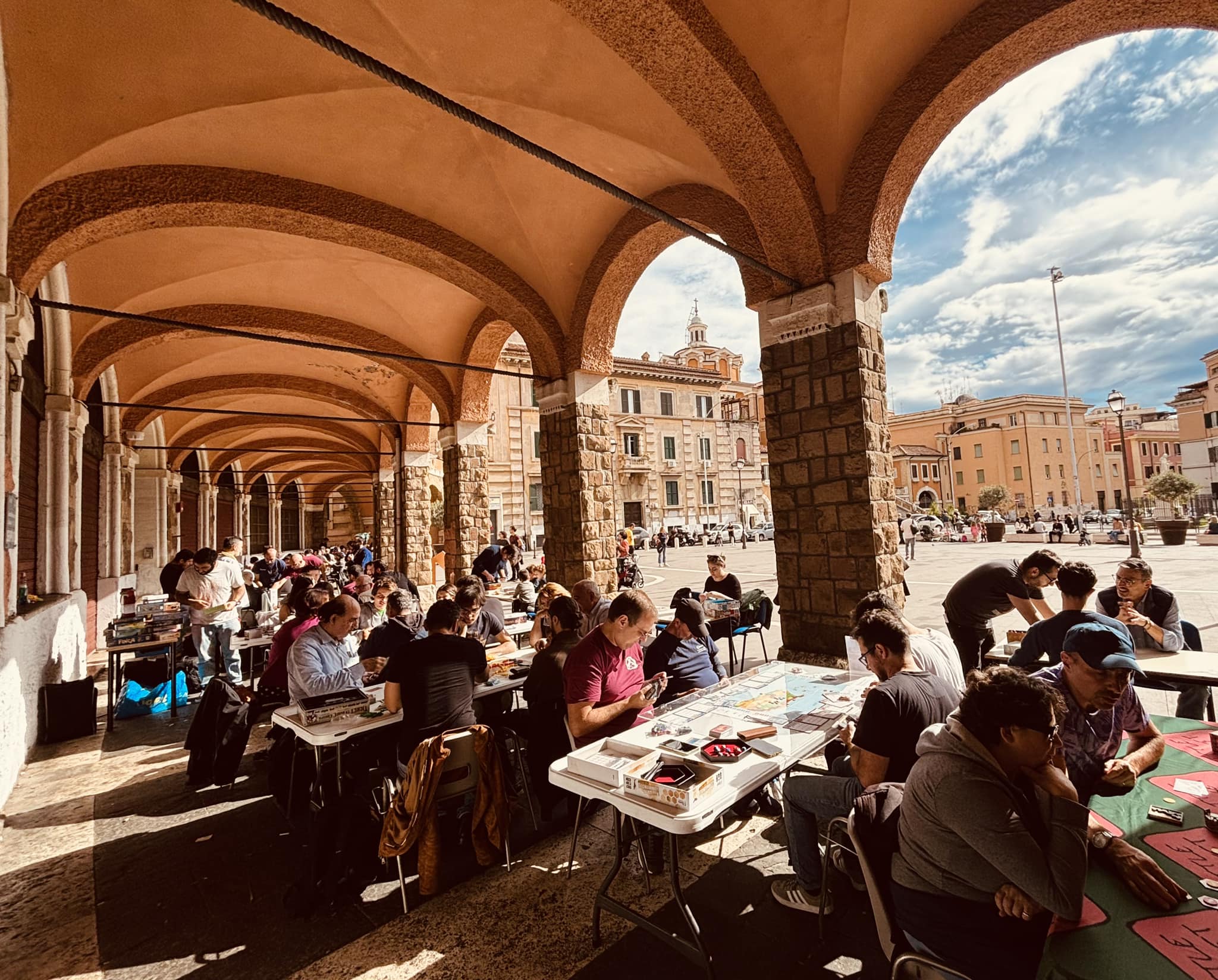 Sotto ai portici di Piazza Sempione duecento persone stanno giocando insieme senza conoscersi: una meraviglia!